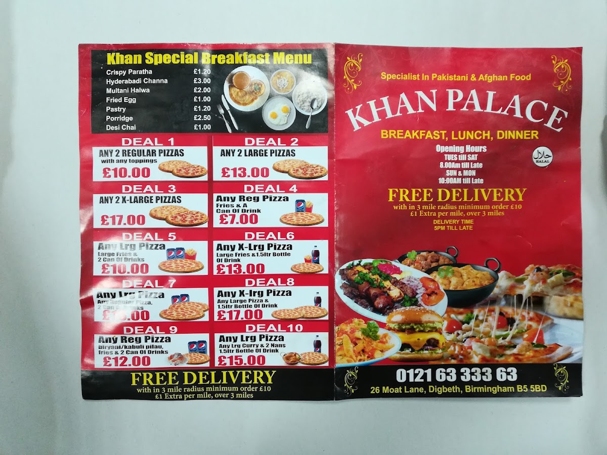 Welcome to Khan Palace, an enchanting eatery located in the heart of Birmingham. This delightful Pakistani and Afghani takeaway grill shop has gained a reputation for its homestyle flavors and inviting atmosphere. The menu is a treasure trove of culinary delights, featuring everything from crispy Aloo Paratha to zesty chicken biryani.